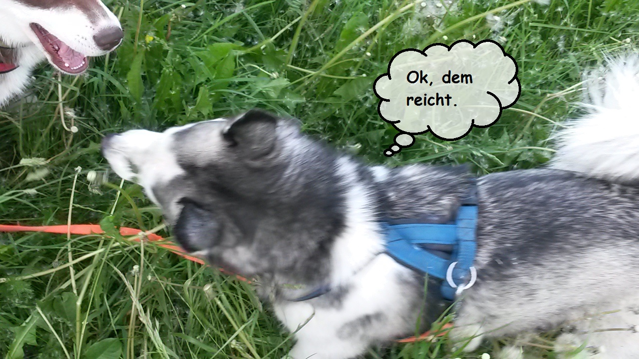 In der Hundeschule wird manchmal eine Übung gemacht, bei der die Menschen die Unterhaltungen ihrer Hunde synchronisieren müssen. Natürlich geht das mit unserer Judith viel ernster ab und orientiert sich am Interaktionsverhalten der Hunde in einer bestimmten Situation, aber das Herrchen und das Frauchen synchronisieren jetzt standardmäßig ihre Hunde.*