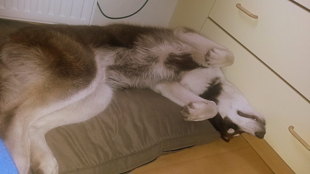 Der Rülpe ist zertifziert der niedlichste, flauschigste, lustigste und bekümmerndste Hund der Stadt! Es kann gar nicht anders sein, die Menschen sind ganz sicher und geben ihr Indianerehrenwort. Nicht nur macht er hinter dem Althund und seinen Menschen sauber,2 nein, er tut auch sein Möglichstes, um im Rudel keinen Trübsinn aufkommen zu lassen. Sogar im Schlaf arbeitet er schwer, wie an der Bilderstrecke zu erkennen ist. Wie kann ein Tag schlecht anfangen, wenn man mit so einem Bild geweckt wird? Dem kränkelnden Althund weicht er nicht von der Seite – auch ohne Spielen leistet der Rülpe ihr Gesellschaft. Es hätte im Garten viel Gelegenheit zu Schabernack gegeben, aber ohne seinen Althund macht eben alles nur halb so viel Spaß. Nach soviel Kümmern und Bespaßen darf man abends auch in Herrchens Fernsehsessel lümmeln. Ach, was ist es schön mit dem Rülpen!
