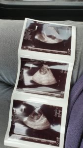 Seit gestern wissen wir nun, dass zumindest sechs Welpen in Ezris Bauch eingezogen sind und sich gut entwickeln, soweit man das feststellen kann: die Herzchen schlagen und sie turnen munter in ihren Fruchtblasen herum.
