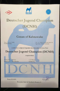 Somit ist Conan of Kahnawake nunmehr Jugend-Champion des DCNH und darf seinem Namen ein JCh(DCNH) voranstellen!