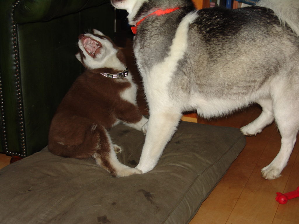 Die Wurfabnahme rückt näher – und damit auch der Abschied von den Kleinen. Sie verbringen inzwischen immer mal wieder Zeit mit ihren zukünftigen Familien. Und so kommt es, dass heute Jungstag ist bei Siberian Huskies of Kahnawake. Und beim Jungstag darf Sisko natürlich nicht fehlen!