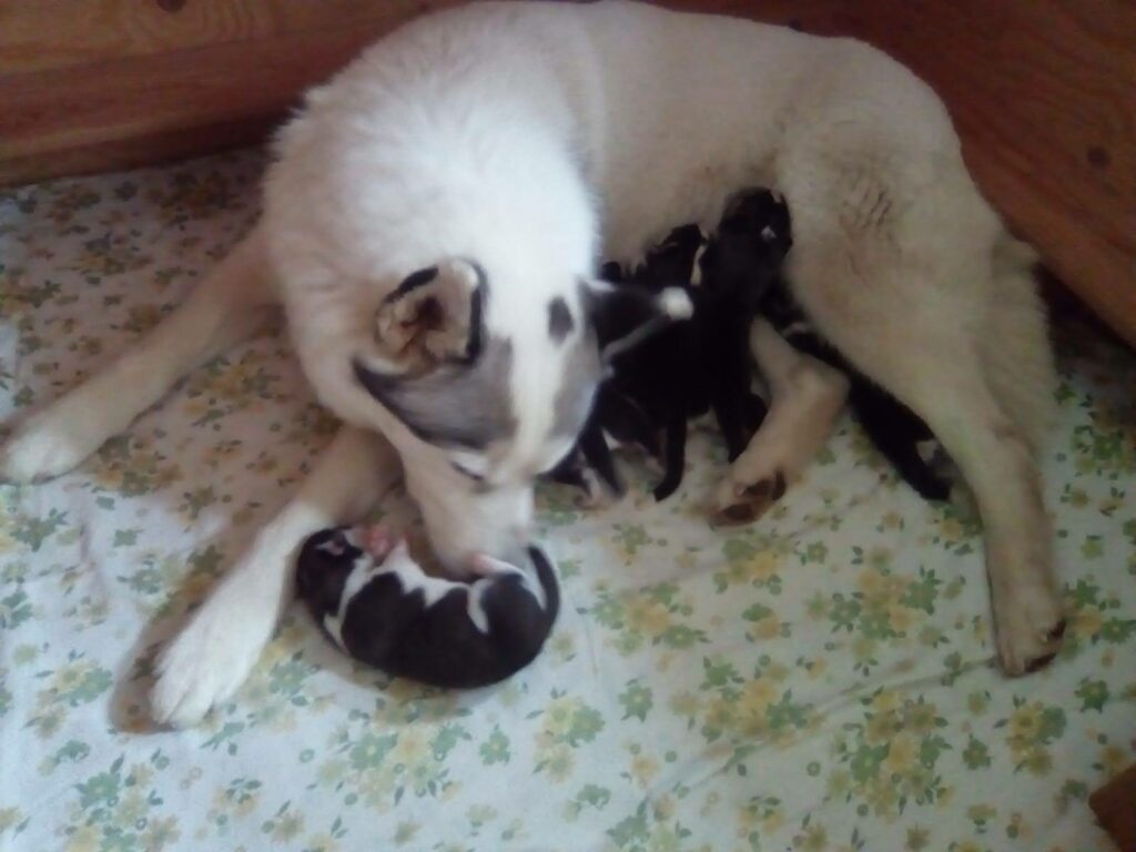 Gestern Abend hat unsere Ezri binnen zweieinhalb Stunden ihren ersten Wurf zur Welt gebracht, zwei Rüden und drei Hündinnen, alle schwarz-weiß, gesund und munter. Vater der Welpen ist unser eigener Deckrüde Shakaar. Der Geburt gingen zweieinhalb aufregende Tage voraus und eine fast schlaflose Nacht. Statt der erwarteten sechs sind des […]
