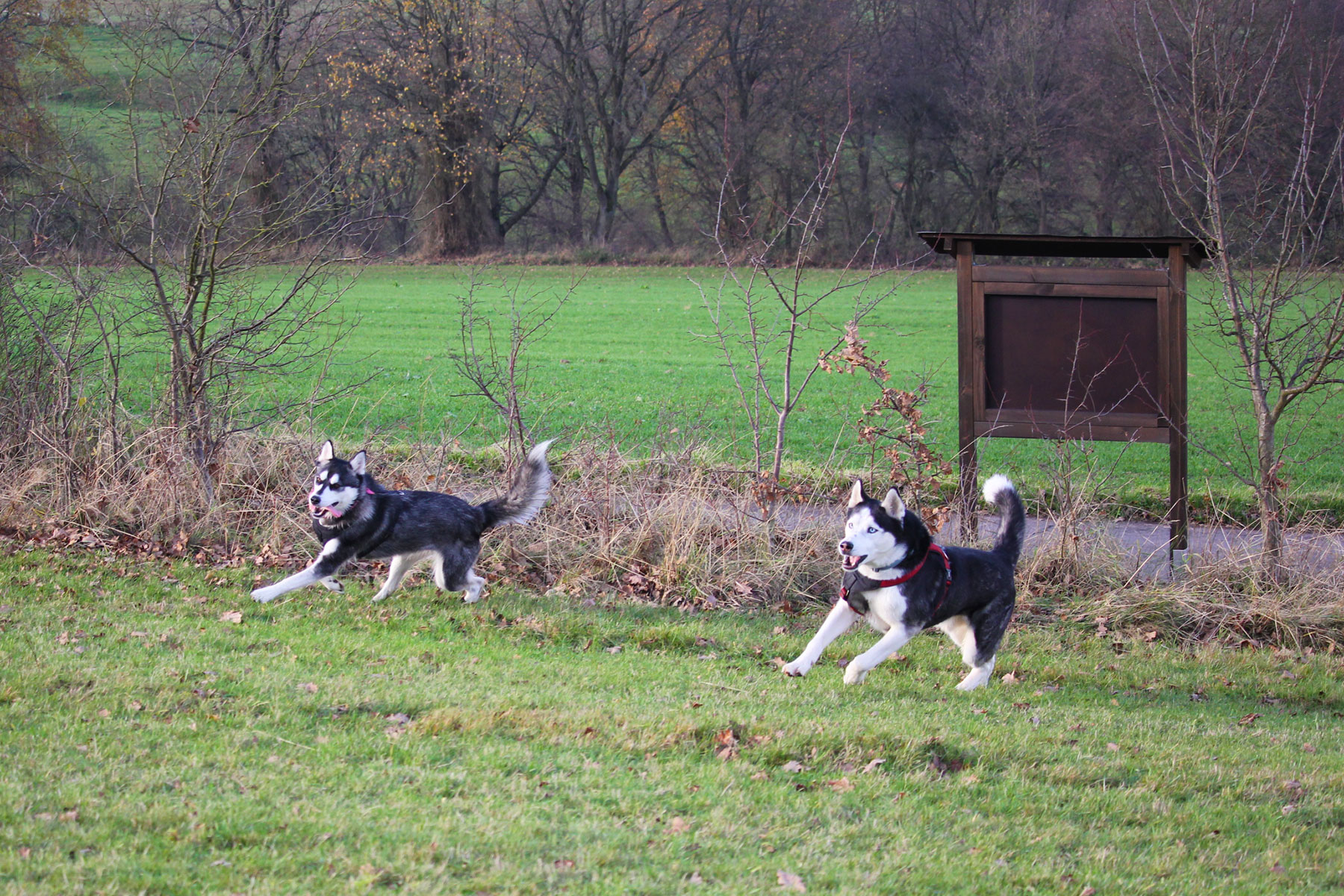 Außer ausgedehnten Spaziergängen und Wanderungen tobt Sisko gerne mit anderen, möglichst ähnlich großen Hunden. Er ist und bleibt der Beschützer seines Rudels. Unser Deckrüde Shakaar spielt nur die zweite Geige, und wenn er gegen die vom Boss aufgestellten Regeln verstößt, gibt’s auch schon mal die Gelbe Karte.