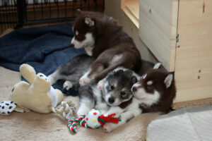 Auf dem Hof wurde im Frühjahr 2019 unser dritter Wurf geboren. Die Mutter war Nukka (Almundis of Kahnawake), die Hündin aus dem A-Wurf.