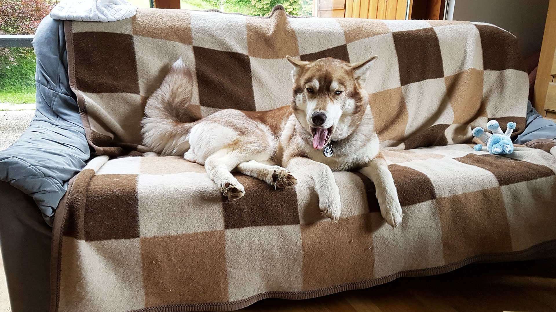 Bei den Decken achten Sie bitte weniger auf Pfotenmotive als darauf, ob das Material pflegeleicht ist. Ideal sind Decken, die man bei mindestens 60°C bis zu 95°C waschen und danach in den Trockner geben kann. Solche Decken sind zwar in der Anschaffung teurer, aber auf lange Sicht wirtschaftlicher als Fleece (bei 30°C waschbar) oder mit Kunststoffwatte gefüllte Kissen. Außerdem vermeiden Sie so den ansonsten unvermeidlichen Hundemief, den ihr Liebling mangels ausreichender Schweißdrüsen im Schlaf ausscheidet.