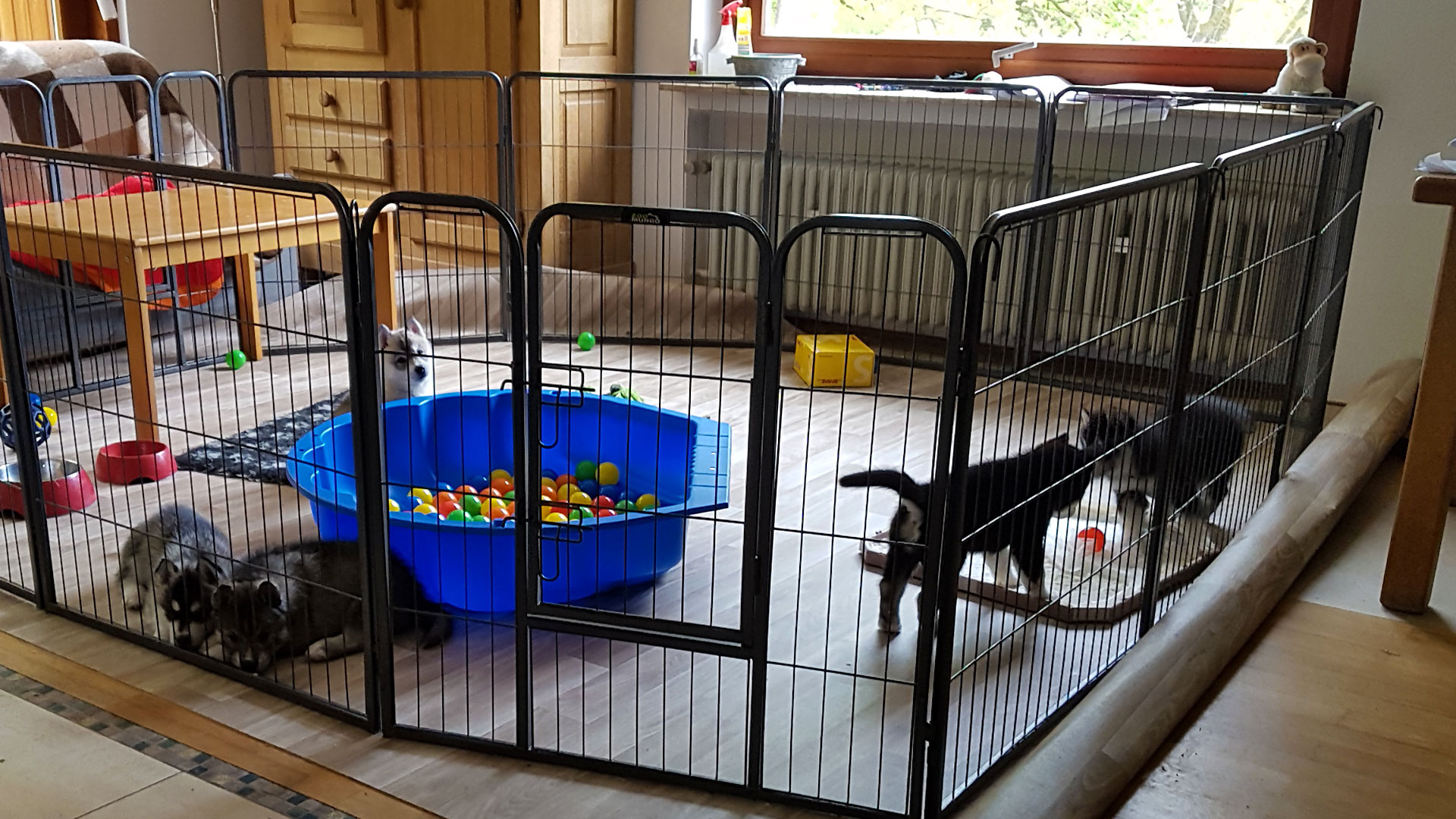 In den folgenden Wochen entwickelten die fünf Freunde sich prächtig, aber ihre Mama haben sie ganz schön geschunden. Seit der fünften Lebenswoche konnte sich die wilde Bande fast täglich im Gartengehege aufhalten. So hatten sie viel Platz zum Toben und Lernen – ganz besonders von Onkel Sisko und Mama, aber auch von Opra, die inzwischen zu uns gekommen war.