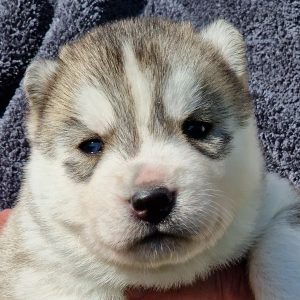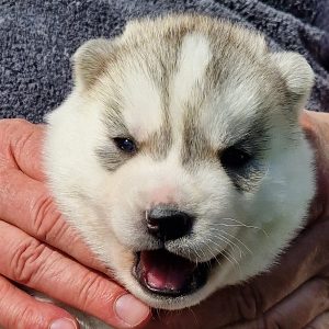 Die Geburt der K-chen kündigte sich am 12. März 2025 allmählich an. Ich hatte mit Ezri bereits das Wurfzimmer bezogen. Die Wehen wurde kräftiger, die beiden nächsten Nächte waren zunehmend unruhig. Bei Tagesanbruch des 14. März hatte Ezri die ersten Presswehen, und der erste Welpe, ein kleiner grau-weißer Rüde, wurde kurz nach 6 Uhr geboren. Ihm folgten innerhalb einer Stunde zwei Hündinnen, ebenfalls grau-weiß.