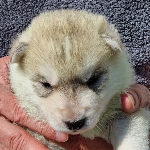 Ezri ist unsere freundlichste Hündin. Ihr liebenswertes, ein bisschen anarchisches Wesen nimmt jeden gefangen, und sie gibt viel davon an ihre Nachkommen weiter. Sie ist ein begeisterter Wanderhund. Im Gespann läuft sie im Lead und hält das kleine Team gut zusammen. Leider fühlt sie sich auf Ausstellungen nicht wohl, sodass wir es nach einem fulminanten Start als Best Puppy In Show und etlichen vorzüglichen Bewertungen unterlassen haben, sie weiter auszustellen – es ist einfach nicht ihre Welt. Als Mutterhündin hingegen geht sie in ihrer Rolle völlig auf. Das und die Tatsache, dass sie kerngesund ist, bewog uns, einen vierten Wurf mit ihr zu wagen.