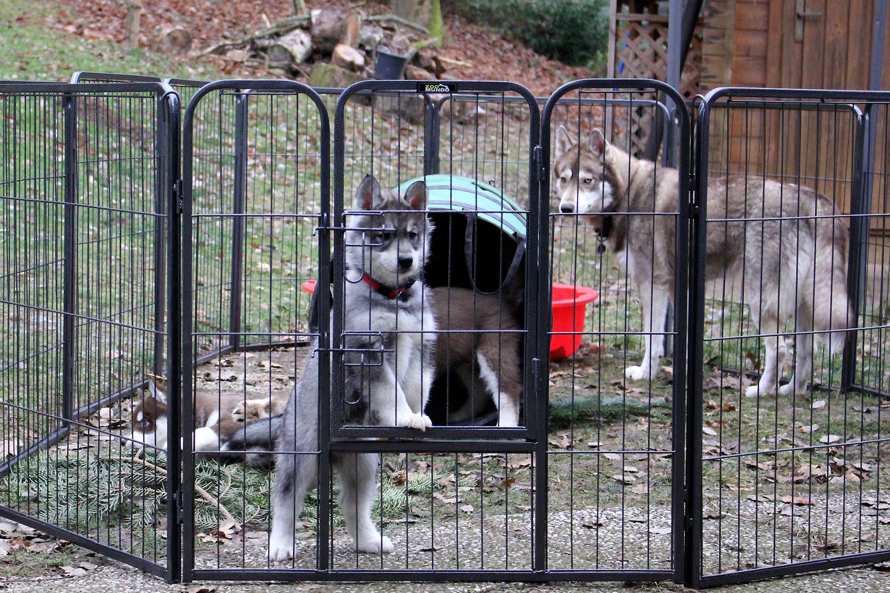 With the weather being nice (pretty cool and dry) the pups spend a lot of time outside. Most of the time they have to stay in the pen, but when someone looks after them, they may even explore the garden. And Kira is enjoying herself with Sisko who turns out the “nice uncle” we expected him to be (as he was with Kira, while she was a pup).