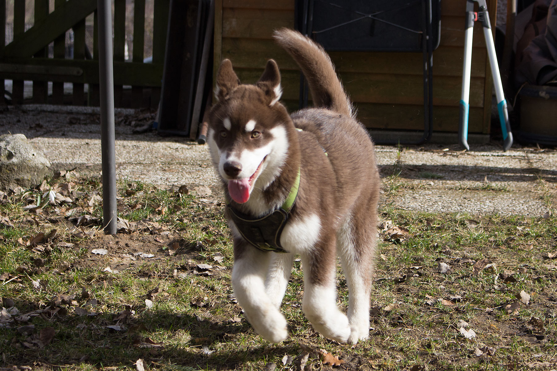 Today Bubbles paid us a visit, playing in the garden right before his first puppy class. He is growing like weeds and turns out to be a really handsome, deep auburn boy. He was having fun re-exploring the place where he used to play as a little pup. Sadly, he did not have much time, but we will meet again very soon.