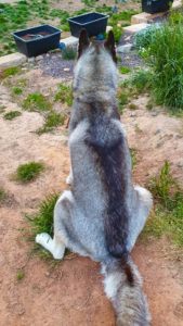 Here they are, the E’babies – as seen in an x-ray. Today we had her x-rayed: there are 6 puppies growing in Ezri’s belly, just like the sono showed 3 weeks ago. The babies are not too big and seem to have grown nicely. They are due sometime next week and we are hoping for a smooth delivery.