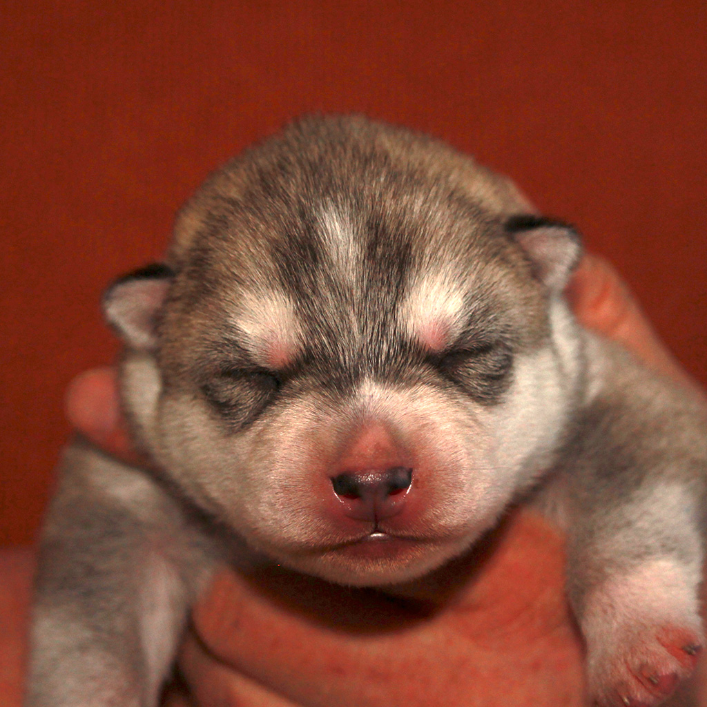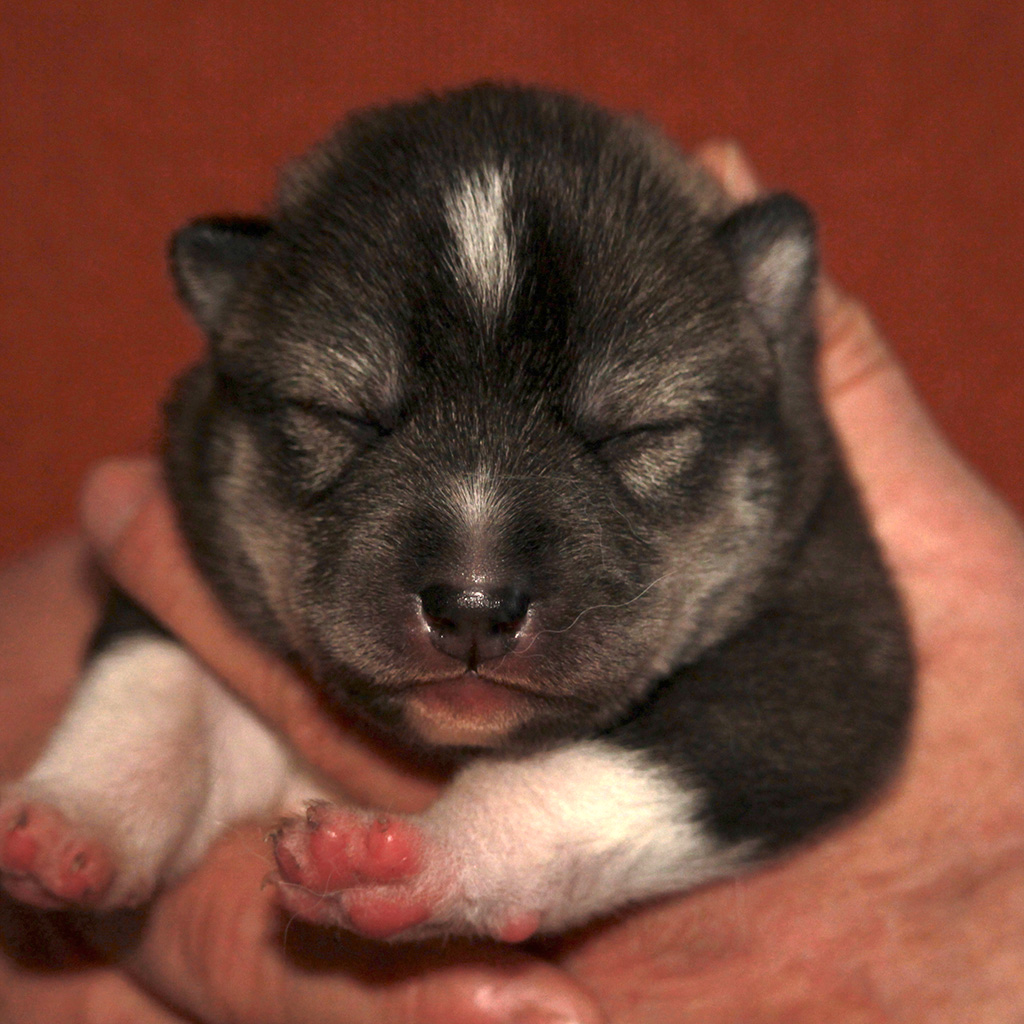 As I expected, Nakoa’s strong pigmentation prevails. The firstborn is gray & white, the other three agouti & white with a dark mask and daddy’s small white blaze on the forehead.