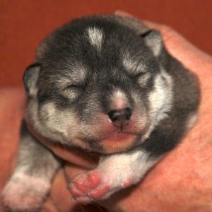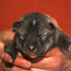 Last Saturday, January 31st, Tyra (GerJCh Josepha Of Kahnawake) gave birth to four puppies, two males and two females. It was a swift delivery, taking less than three and a half hours. The boys must have been in a hurry, popping out within 16 minutes. Then Tyra took a rest, taking care of the babies. The girls apparantly wanted to dress up a bit and entered the box two hours later, leaving another break of 57 minutes between them.