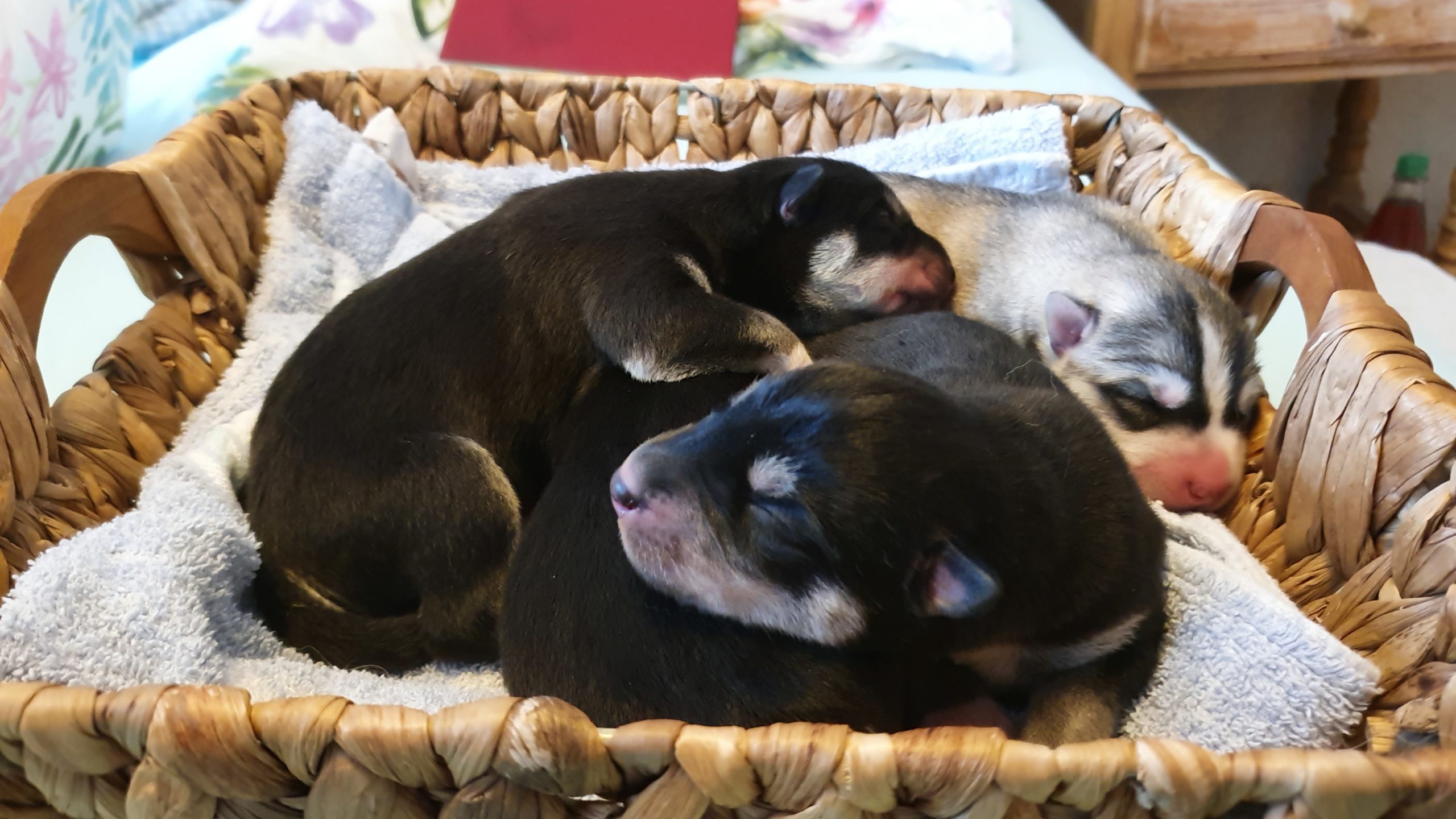 Six days later Kira went into labor. It turned out to be a very straining birth with one of the pups being stillborn. It took too long, until he was born, after the amnion was torn. All of his siblings were born safe and sound.