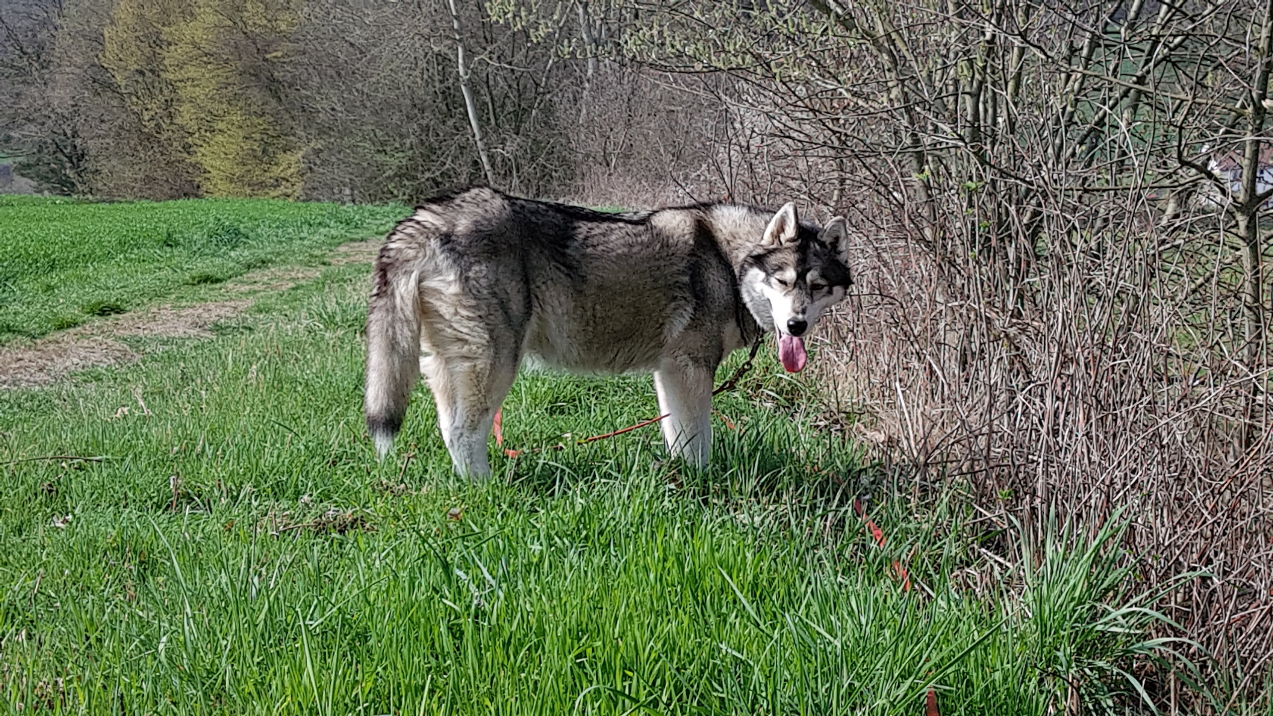 Nukka is Kira‘s daughter from litter A, sired by MCh  Waterfall Velnio Malunas. She lives with friends of ours in the area of Marburg, getting a lot of exercise side by side with a very motherly husky collie mixed breed. We arranged co-ownership with her family, so we can breed with her.