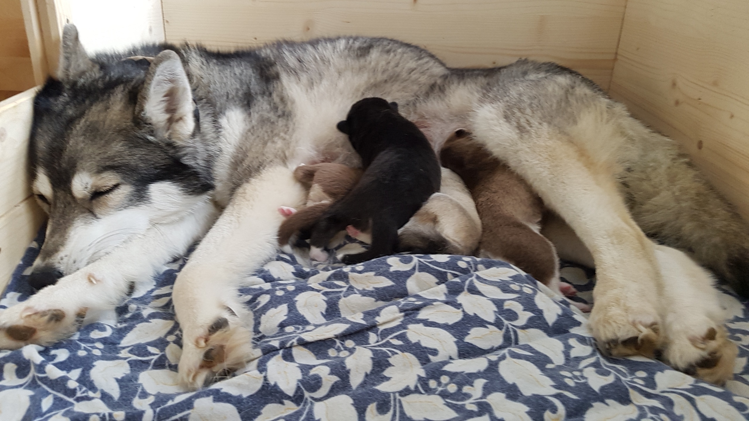 In January 2023 Nukka suffered from a pyometra and had to be spayed to save her life, just like her dam. So the dream of another litter expired, when I myself had begun to give it up. We hope, Nukka will live a long and healthy life with her beloved family and pack and we are very thankful for the opportunity to breed her. She had a beautiful and most colorful litter of all so far and gave birth to the first offspring gaining titles, Junior Champion and Club Junior Winner Conan.