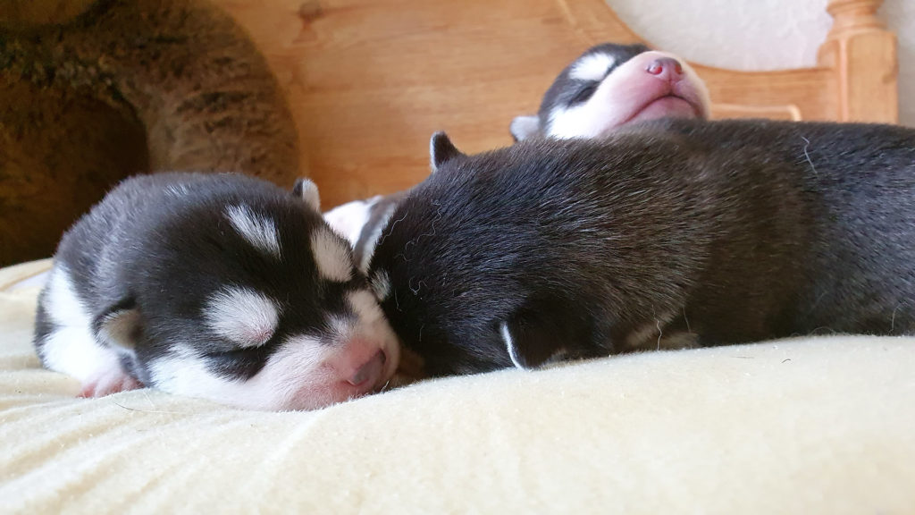 Yesterday our F litter, an all-girl team, was born. On Tuesday, Opra had a hard time with an almost sleepless night due to labor. Then, in the morning, exactly two month after being bred, she gave birth to three little girls. The first one did not really want to leave […]